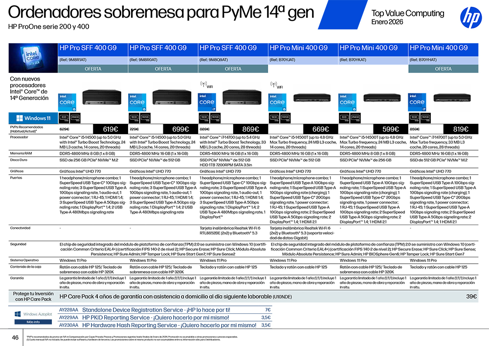 Oferta pc’s HP Enero 26